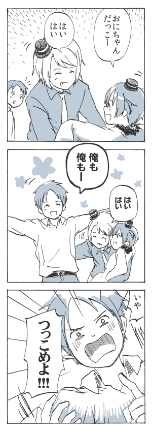 だっこ(モルドバ・ルーマニア・ブルガリア) ルーマニアさんとブルガリアさんってこんなイメージ しょーもないことで盛り上がる男子高校生的なノリを感じる あと国名漢字一字表記が…なじみが無さ過ぎてぱっと見でさっぱりわからん… |2014/08/19|