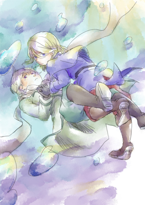 色塗ったら思いのほか悲しい感じになってしまったのでなごむ感じの二人